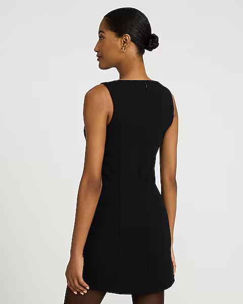 Crepe Boat Neck Sleeveless Mini Sheath Dress